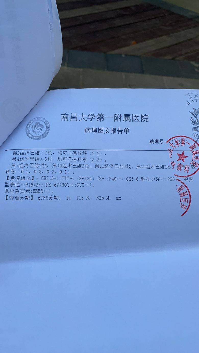 3AN2期的,同病相怜,真心祝你们好运!但是还是有些实话要说的,希望你理解,绝对没有恶意的。看了你的病理报告,这哪里是什么成功的手术,哪遇见什么好医生,明明就是个典型的从一开始就注定失败的手术,还不和患者说清楚,糊弄人呀,好点想也可能他心里愧疚不敢说实情。理由:最高纵膈组拿了两个淋巴,结果全转移了,根本就属于术前就该讨论清楚,到底适不适合根治性质手术的。虽然我多嘴了,但是你是家属,就放在心里,不要告诉患者。所以后面的治疗不能太随意了,应高度重视,这是我想说的重点。