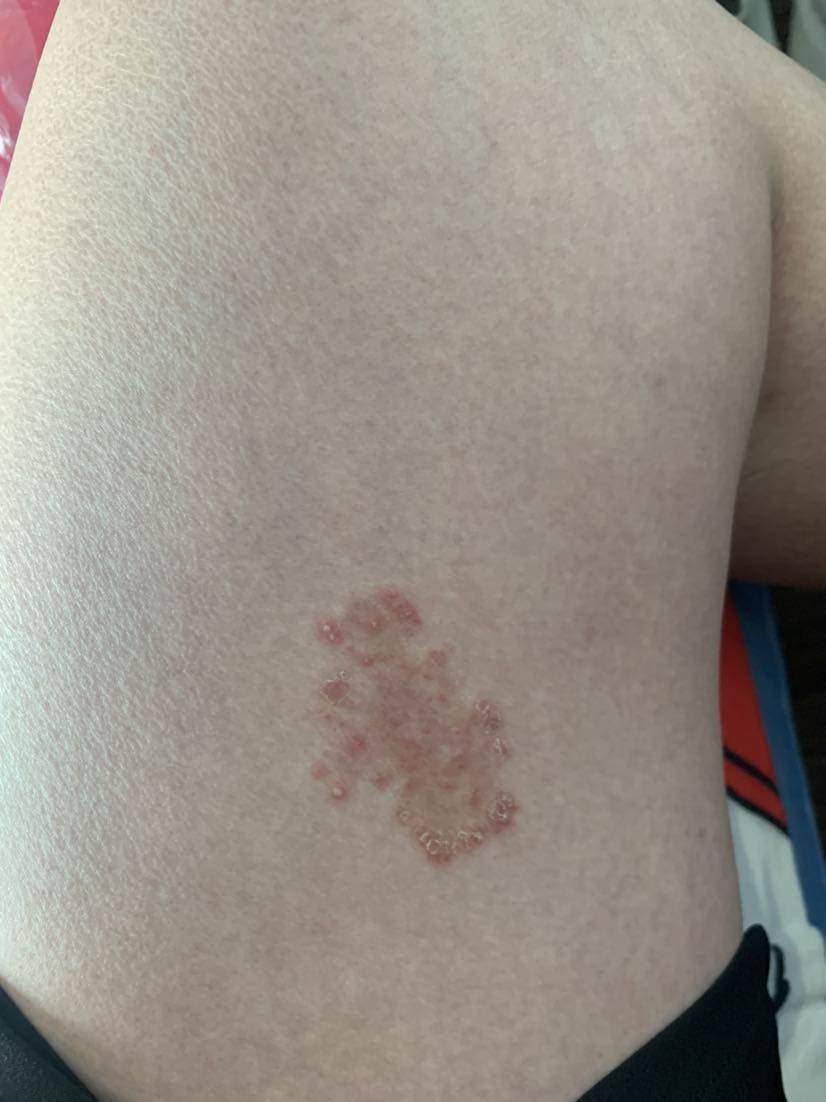 这个是带状疱疹,之前我也在大腿那里长了一模一样的