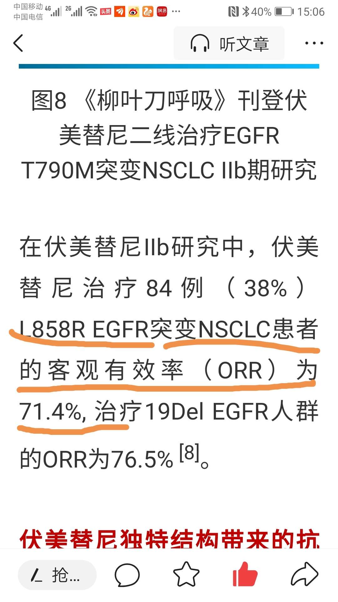 典雅的紫菜一般认为三代药奥希替尼治疗效果是比较好的。既然没有效果,可以试换靶向药的。达克替尼是二代药,大概四月份降价百分之八十以上,现在比较便宜,先前我服用的阿法替尼,效果很好几个月减小了百分之八十。后来停滞不前,又出现了肝多发转移,我又更换成了达克替尼,虽然肺部稳定不前,但肝转移消失了,试试嘛,说不定换药以后会有意想不到的效果。
