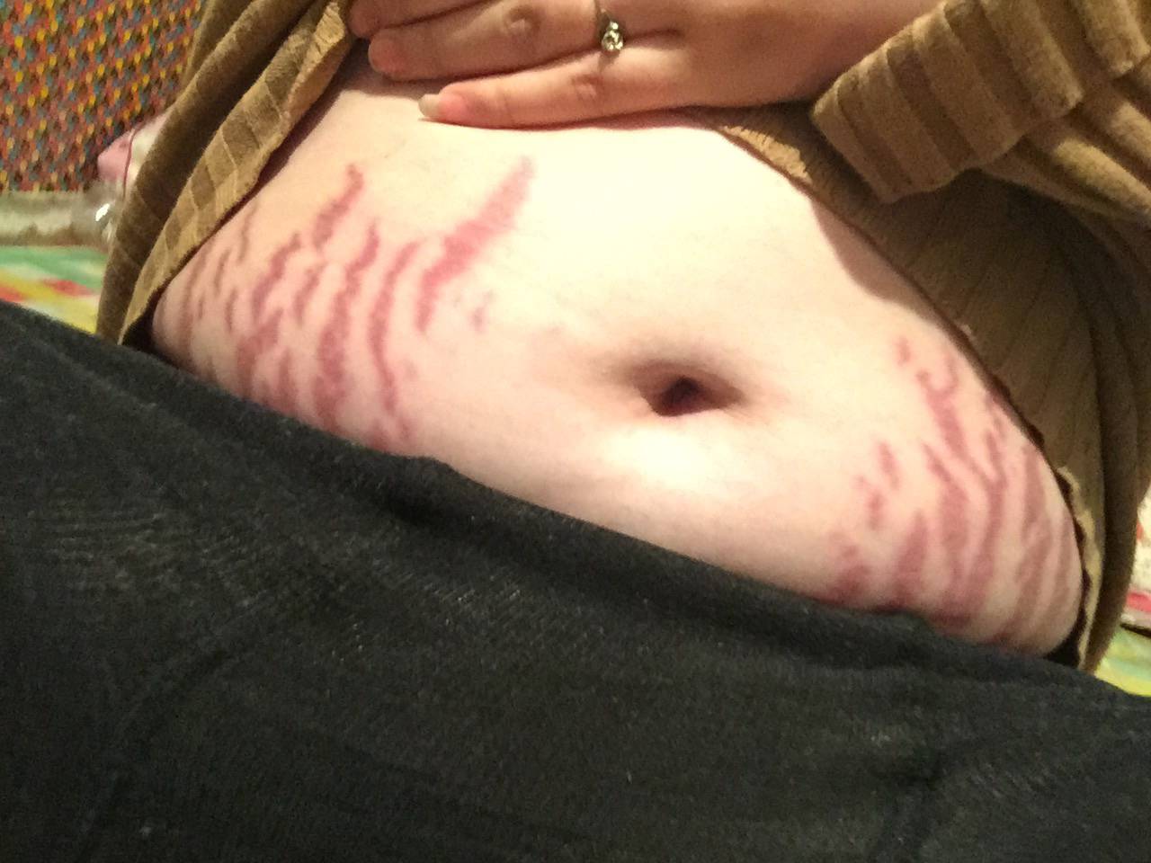 你这是多少片激素的结果,我想你之前可能是很瘦的原因,我也有激素纹,腋下和肚子,腿部没有,你这比较多,哎,遭罪呀…我的激素纹痒痒,可能是刚刚撑开的原因吧…没事,好病就行了