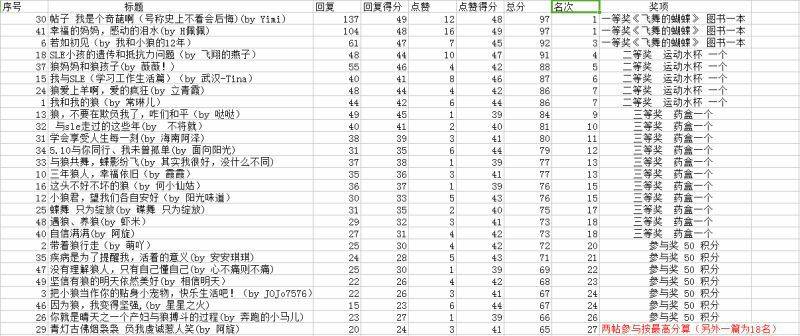 首先感谢大家的参与。其次感谢Yimi帮我整理。先回顾下活动的奖项