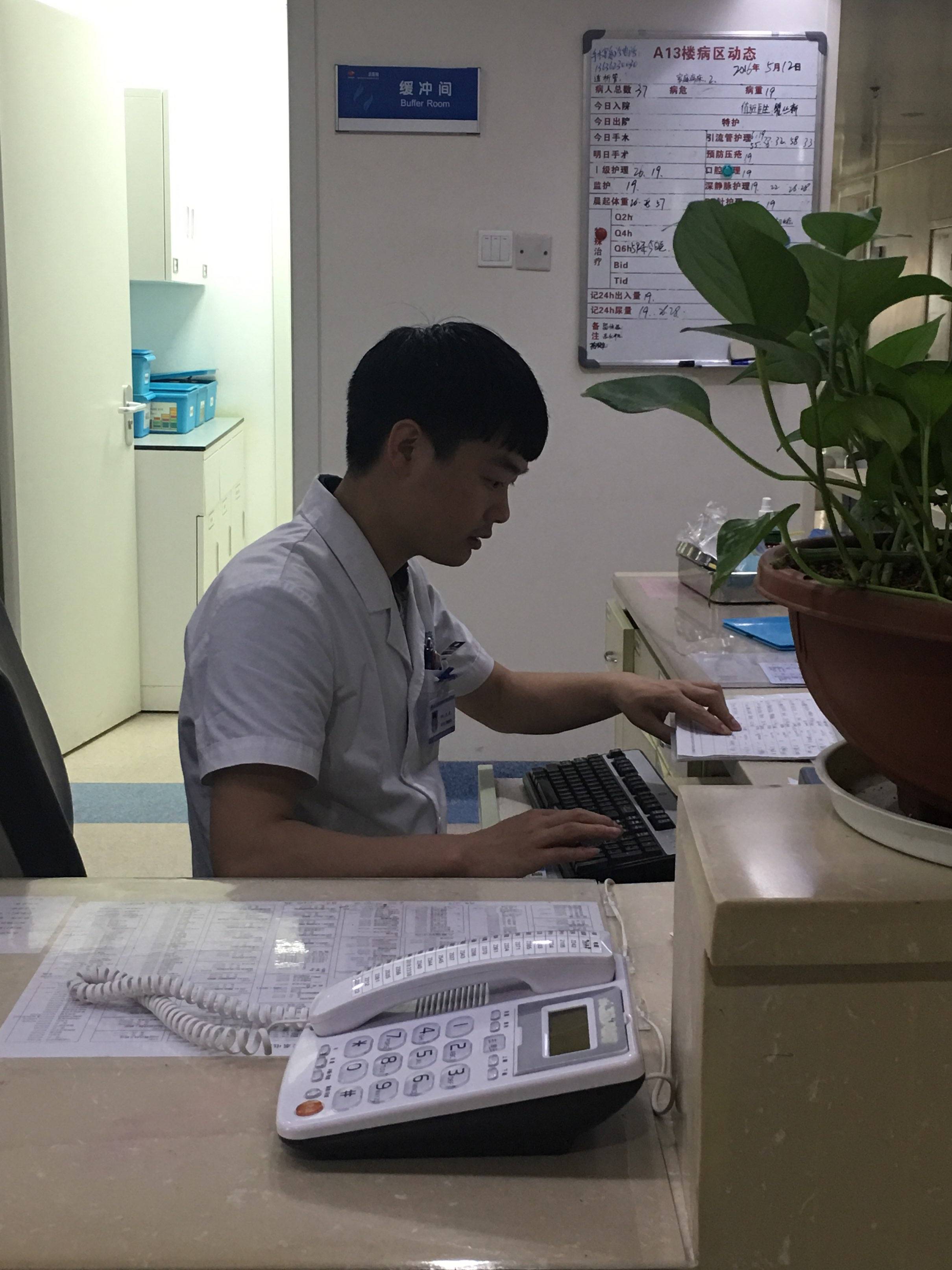哇,挺帅的呀,现在男护士少见了呀