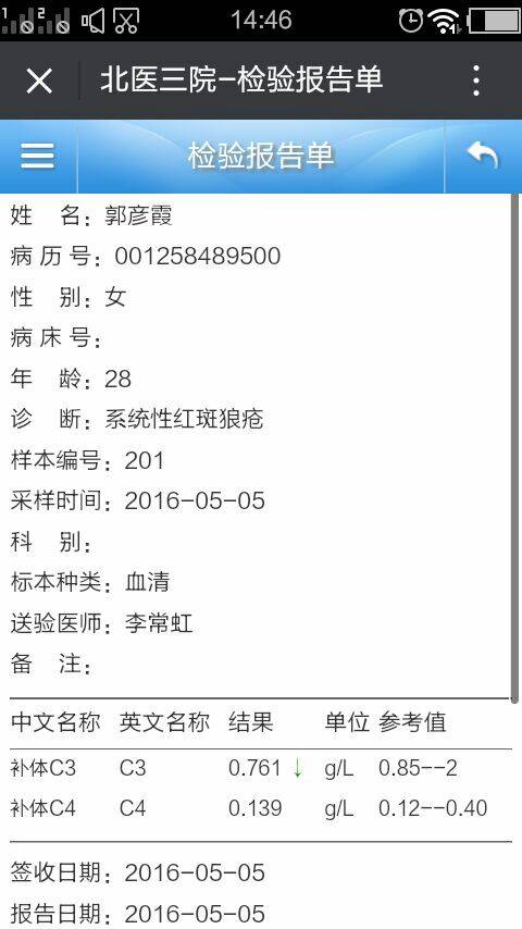 肌酐和补体c3有点低哦,我是很看重这两个的,我补体c3一低皮肤就长红斑。