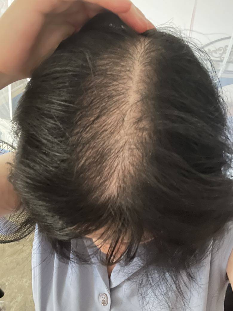 看看我可怕的头顶,头发都快光了秃了一大片。自2006年生病以来,就没有停止过脱发,就算是比较稳定也是没见长发,现在的发量已只剩原来的三分之一了。没办法,我已戴假发片两年了,只有假发片才能挽回我可怜的那点自信。不知道病友们有没有什么生发秘籍?