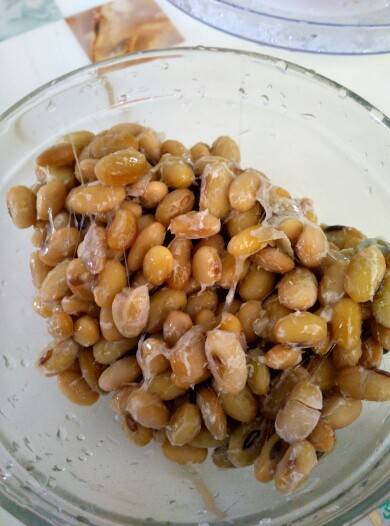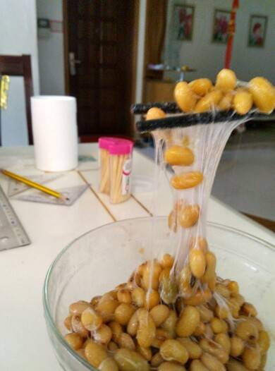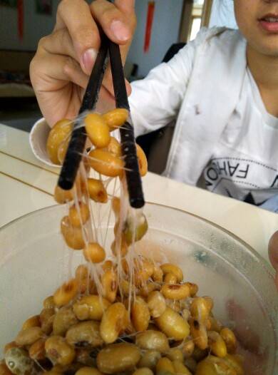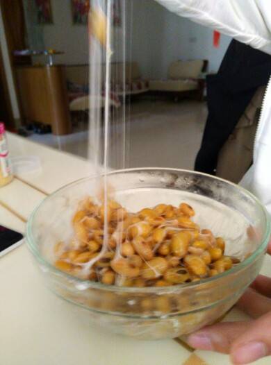 听说纳豆对清血管有强效,我一直想尝试,咬牙买了纳豆机,纳豆菌,居然第一次就实验成功了!有没有看到好多丝,那就是成功的标志,看来我真的是天才哦
