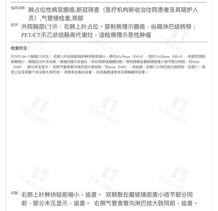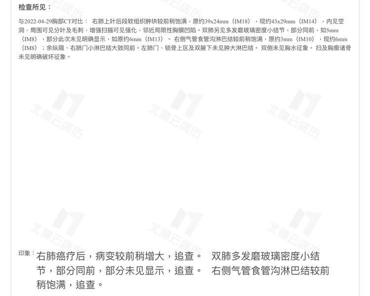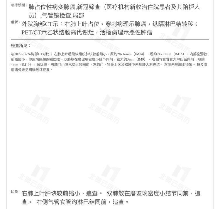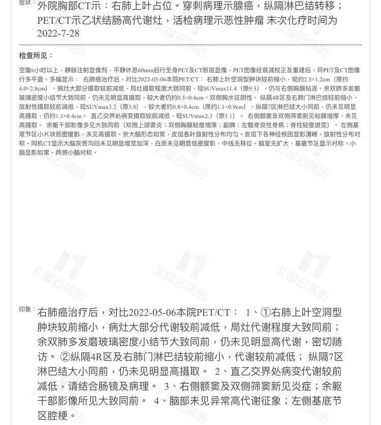 穿刺检查结果出来,肺腺癌,低分化,没有基因突变,免疫表达TPS25%。肠部,腺癌,中分化。