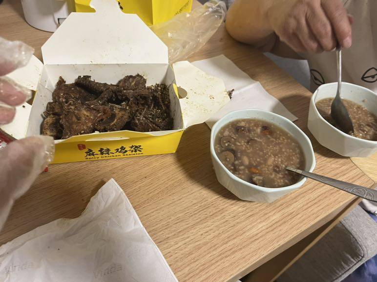 妈妈按摩完身上疼,吃了感冒药也睡不着,凌晨一点多就醒了,告诉我想吃鸡叉骨,叉骨没有,大半夜点个鸡架,凌晨三点俩人啃鸡架,感谢首都半夜都有外卖…妈妈吃完不睡了玩一宿羊了个羊,白天也不睡,熬到现在了。下午困了坚持不睡,怕晚上睡不着,周六血液检测结果出来了,生化16项白蛋白39.2有一点点偏低,血常规中性粒细胞绝对值6.51一丁点偏高。其他一切正常,明天早晨去颈部b超。希望一切都好。