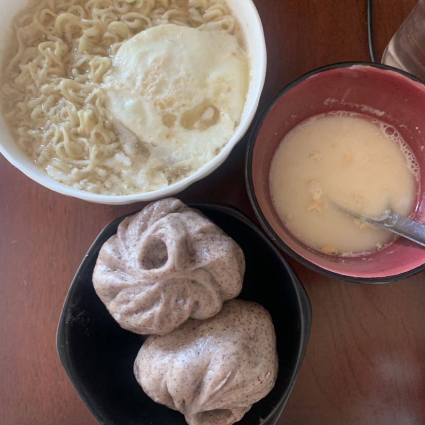 早餐🥣杂面杂蔬包子 方便面荷包蛋,好久没吃华丰方便面了,馋嘴啦😋