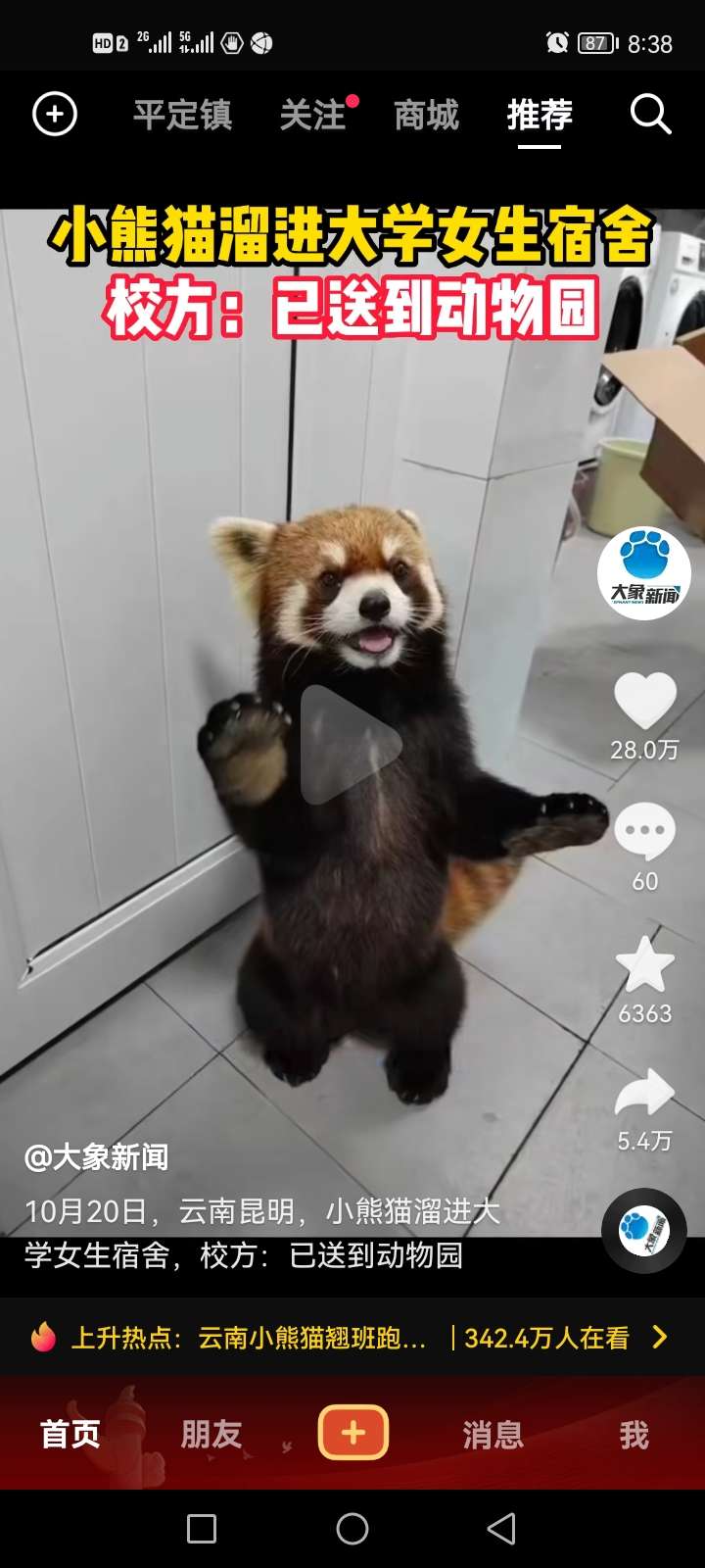 一只小熊猫越狱跑到学生宿舍洗衣房😍