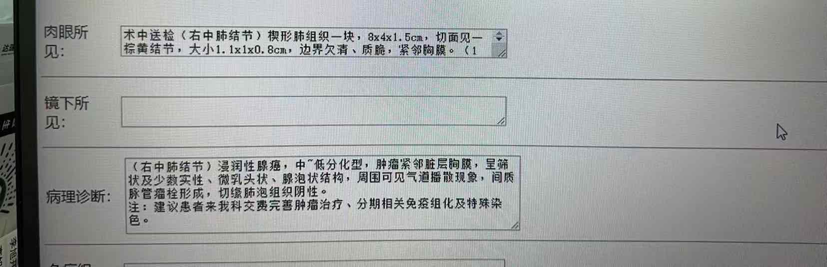 好像问几次了吧,但是你连个术后正式的病理报告都没发出来,下面说不准确的你就当没说吧。。。。按上面的信息,无论哪个医院,规范化的标准治疗是没有的了。。。。个人建议你们个体化治疗还是要的,辅助化疗四次,然后免疫辅助一年。理由,病理亚型不是太好,筛状实形微乳头全有,比例没标注,然后脉管气道也写了,还是个楔形术,总之吧,风险因素肯定是有的,为消除这些个风险潜在的可能性,辅助治疗选择积极一点,当然我全是推测,证据是没有的。如果你想辅助治疗保守一点,那就选中药,有多大效不知道,起码能有安慰剂的作用(不要小看安慰剂,它有用的,减轻焦虑,调整心态)。