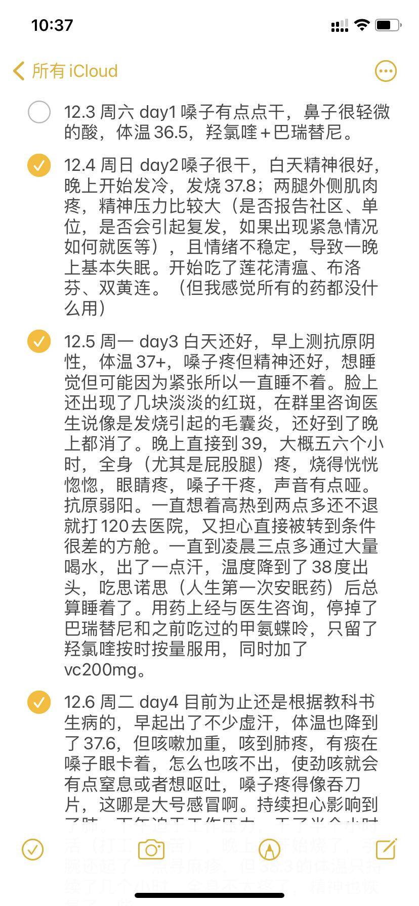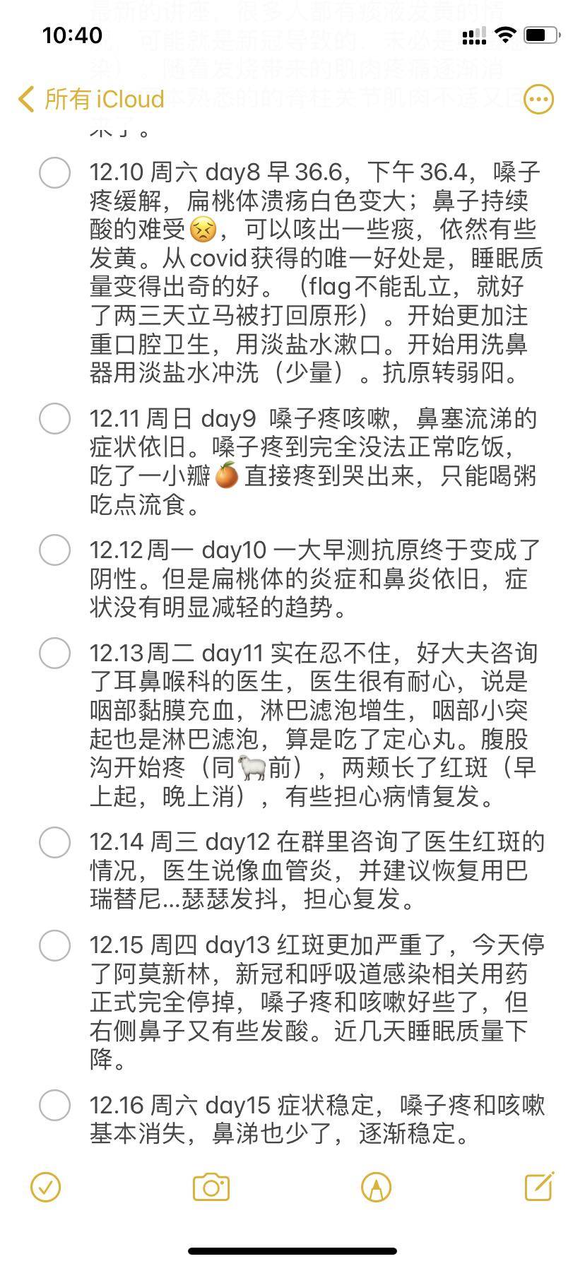 当天晚上,男朋友就发烧了🤒️,我们都以为是白天冻得。没想到第二天开始,我也开始有些咽部不适。以下是我每天的情况。