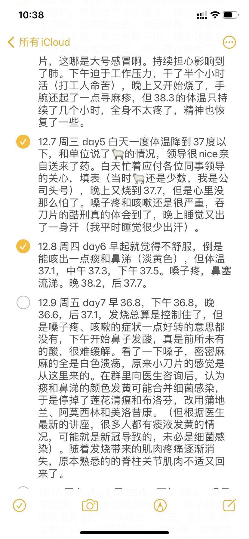 在人均温度38度的北京,我是最早🐑的一波。12.5测抗原阳性,12.12转阴,经历了咽痛、反复发烧、全身疼痛、咳嗽、鼻塞流涕等各种症状,总体应该是症状比较重的。