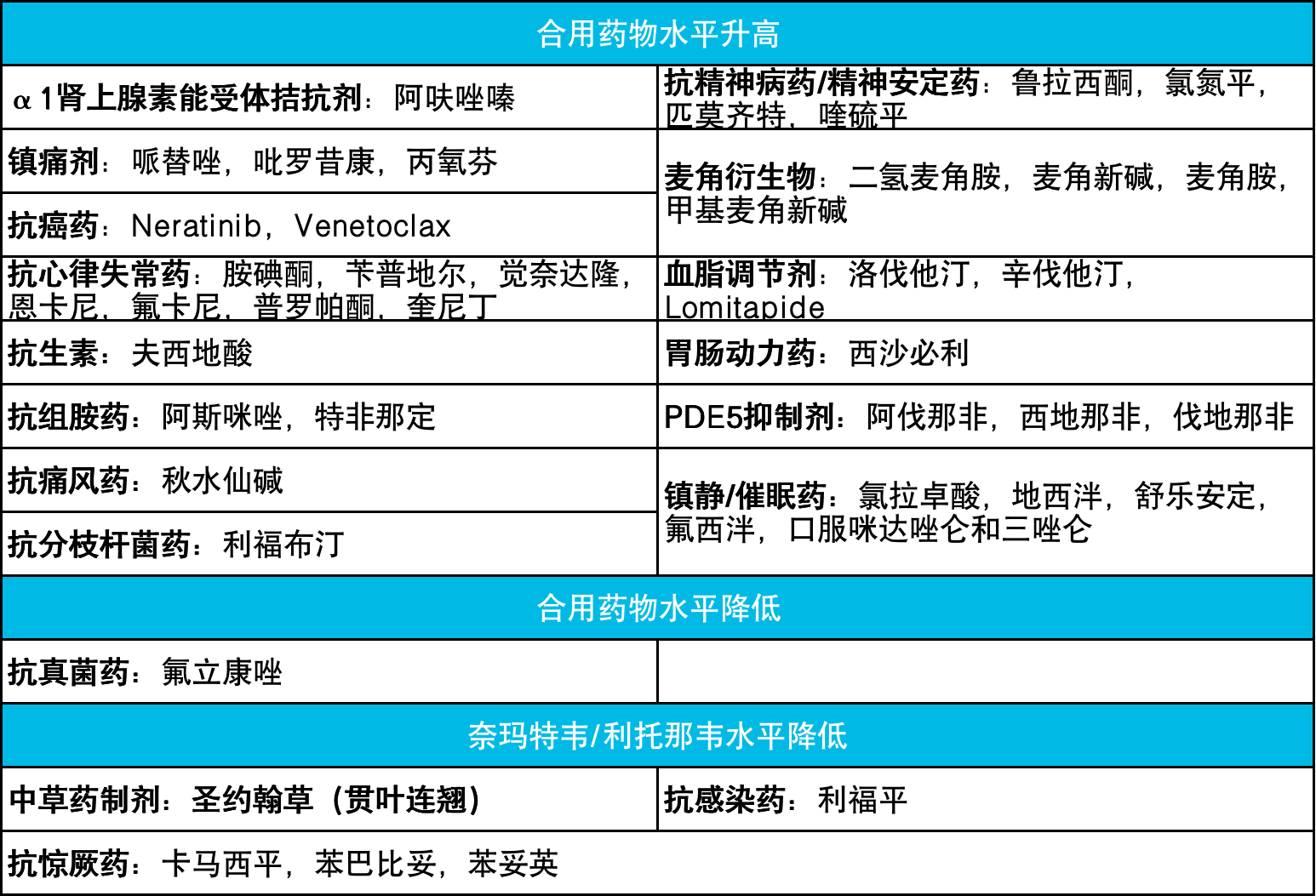 还有以下表格中的药物严禁与Paxlovid联用:
