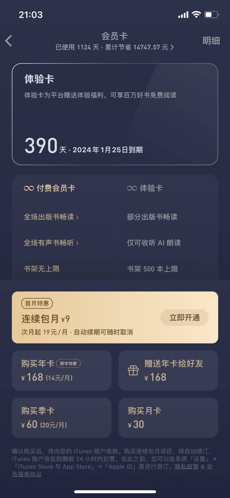 闲时用微信读书的app阅读,免费体验卡越攒越多,本来想攒到2023的最后一天,结果一不小心就越了界,冲入了2024。管他的,对我们来说,时间当然是多多益善。