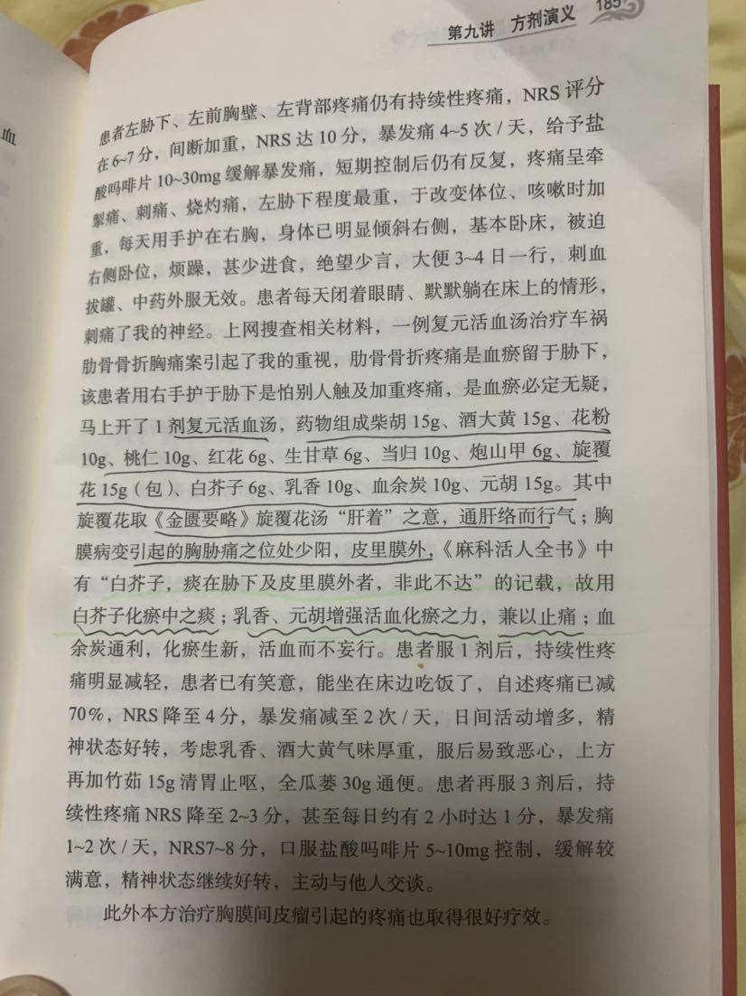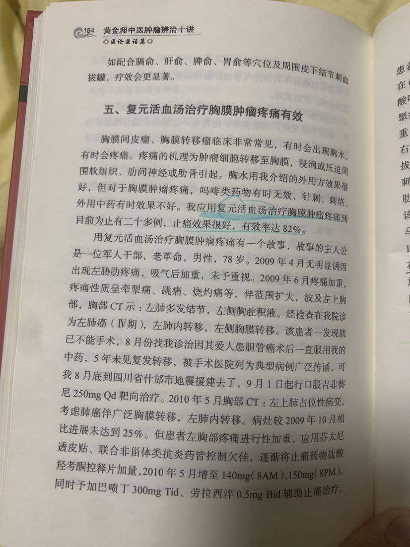 复元活血汤治疗胸膜肿瘤疼痛有效,有病友实践有效请留言