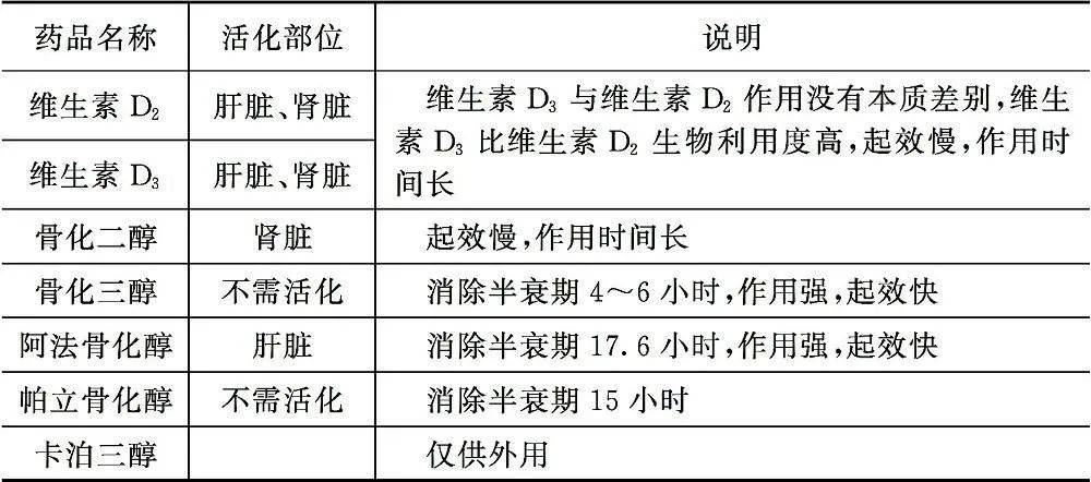 1.看药物特点:维生素D及类似物的药物特点如下表,蝶友们应遵医嘱选择适合自己的维生素D片。
