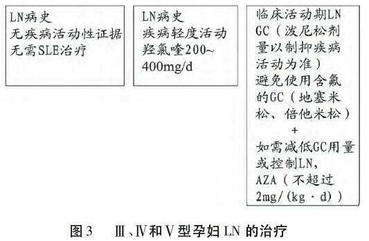 LN患者在妊娠期间,如有轻微活动可使用羟氯喹。有狼疮活动者,可以应用AZA,其引起胎儿异常的几率很低,但剂量不超过2mg/kg。