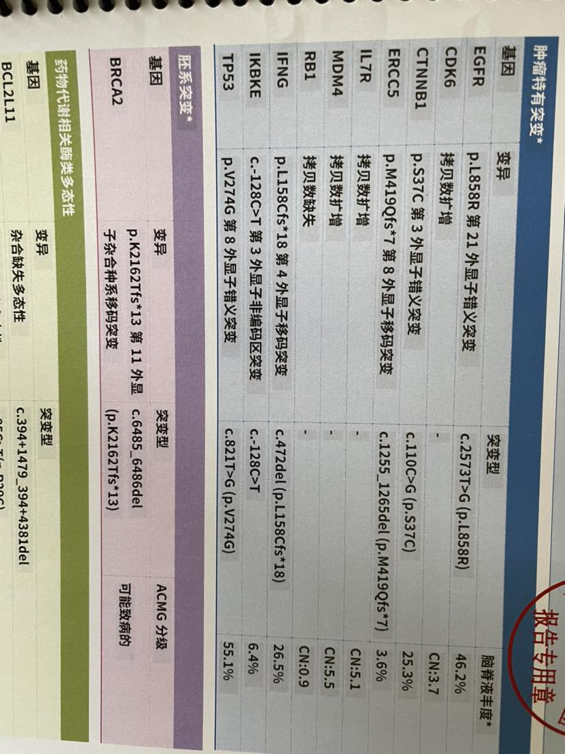 最后配图白介素2方案治疗前后的脑脊液基因检测对比图片。