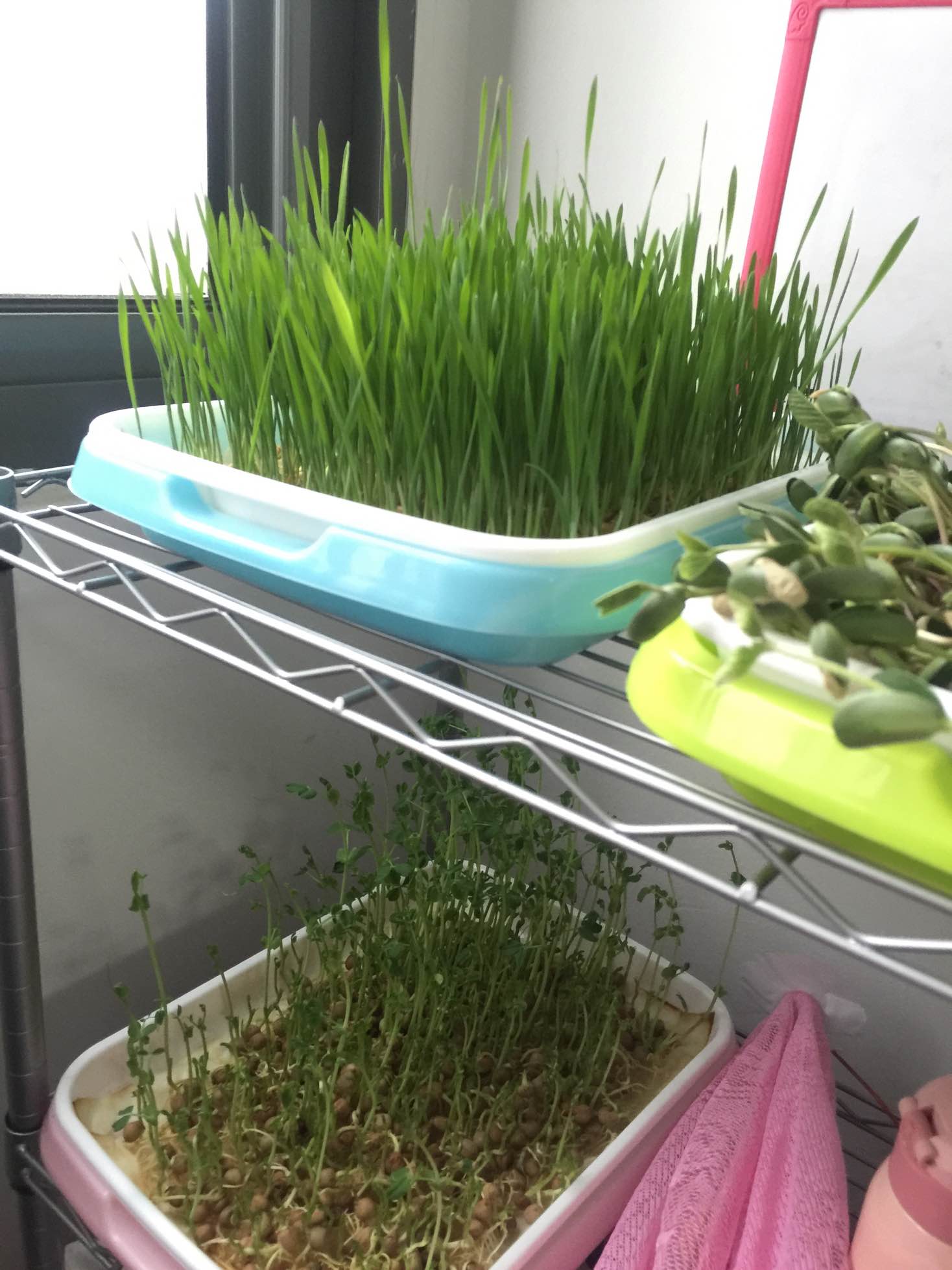 是小麦草和豆苗吧,我治疗结束也试试。