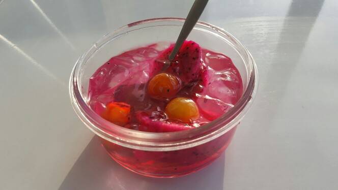 淘宝买来冰粉,烧水煮玫瑰花苞,按比例冲入冰粉,放冰箱冷藏。吃的时候,加鲜果蜂蜜。简单吧?