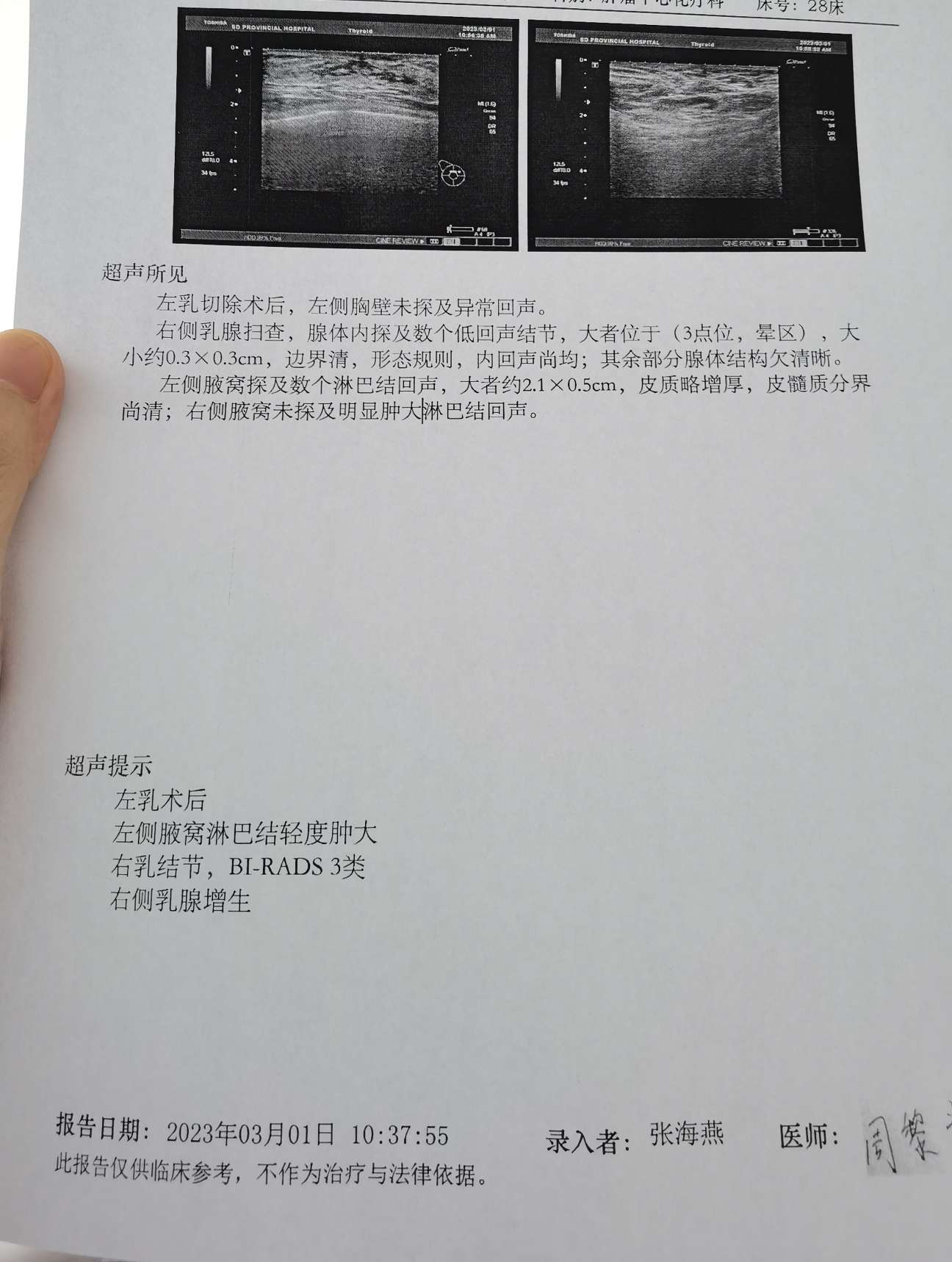 悠悠鱼66今天又做了穿刺,患侧腋窝淋巴结还是有肿大