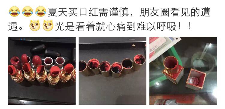 ,对于这个我很有发言权(身为口红控,从没发生口红融化事件)。其实只要保存得当并不会发生这种事情,至少我从没遇到过,除非你把它们放在高温下暴晒或者放在火炉边上,买来的口红我一般都放在阴凉处,或者抽屉里,根本不会融化,大家别被微博热搜给吓到而放弃心头好哈