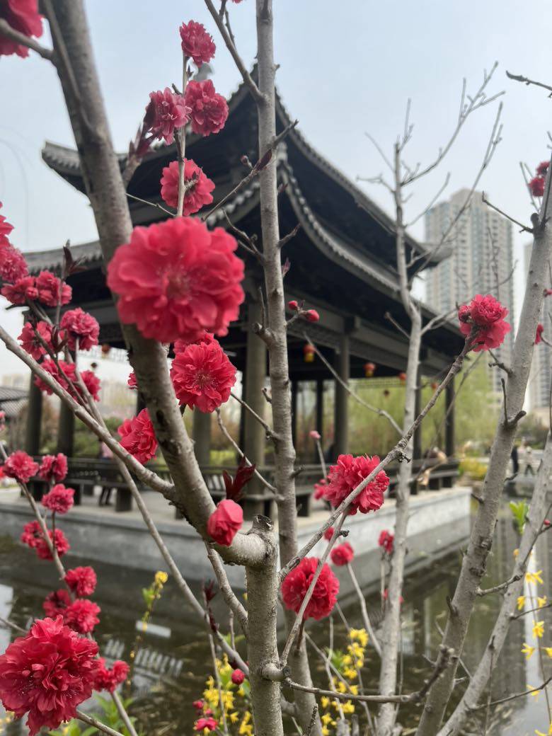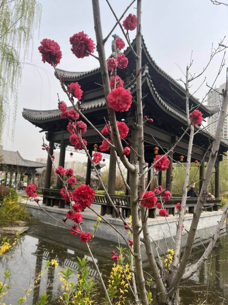 三天沙尘暴,三天没下楼,今天天气好一点,小花园站桩五分钟,进步桩也就走了几步,就出汗了,散步吧,绕湖一圈。