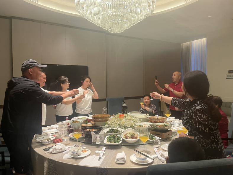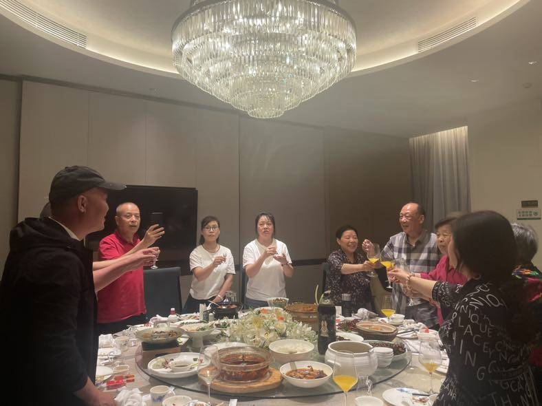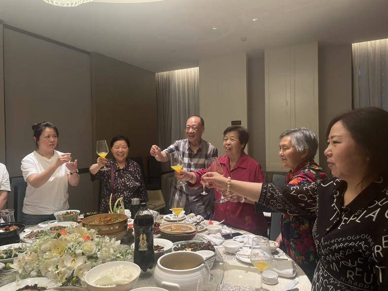 今年和她的儿女们又一起回老家,老人们是见一面少一面了。今晚大家一起聚餐,表哥表姐们条件都不错,原本应该我们尽地主之谊,反成了他们请我们吃饭给我们送礼,送了一瓶酒还送我一张真丝围巾。