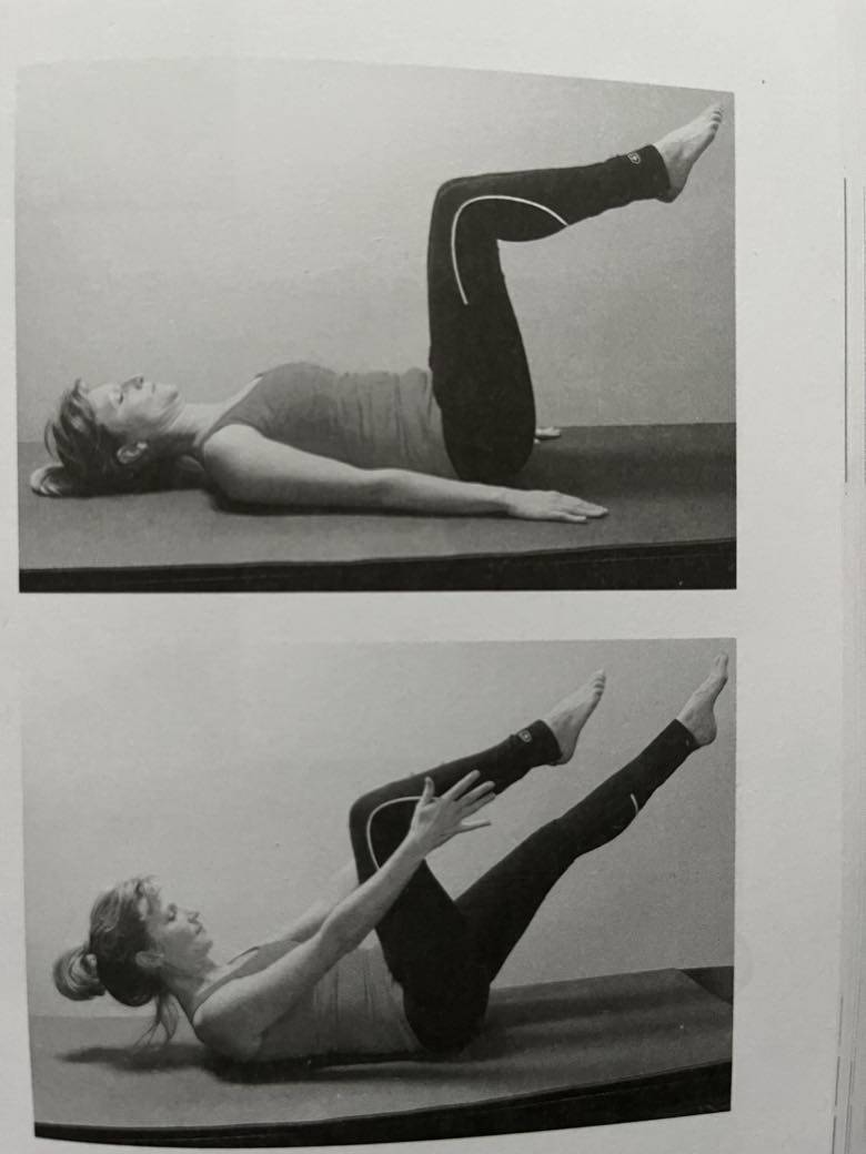 吸气,呼气,左膝找胸口右腿蹬直与垫面呈45度角。
