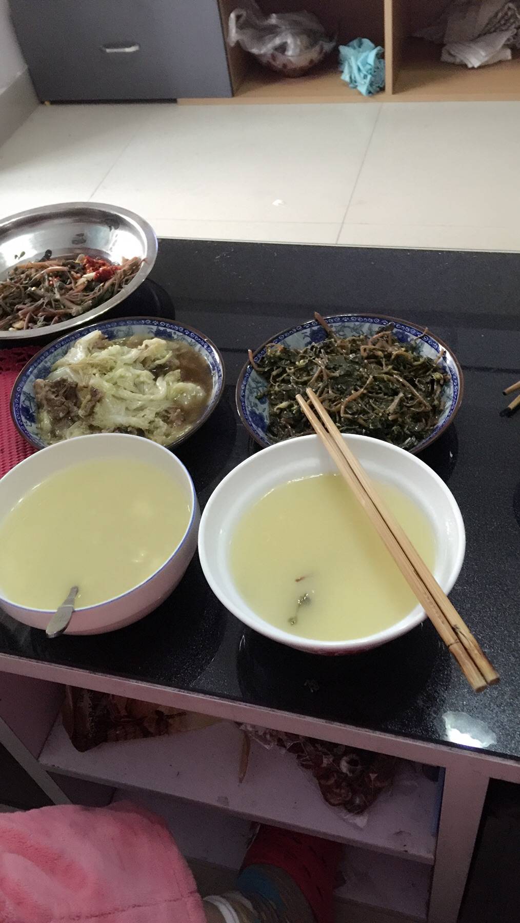 早餐麦子米糊,蚂蜂野菜。