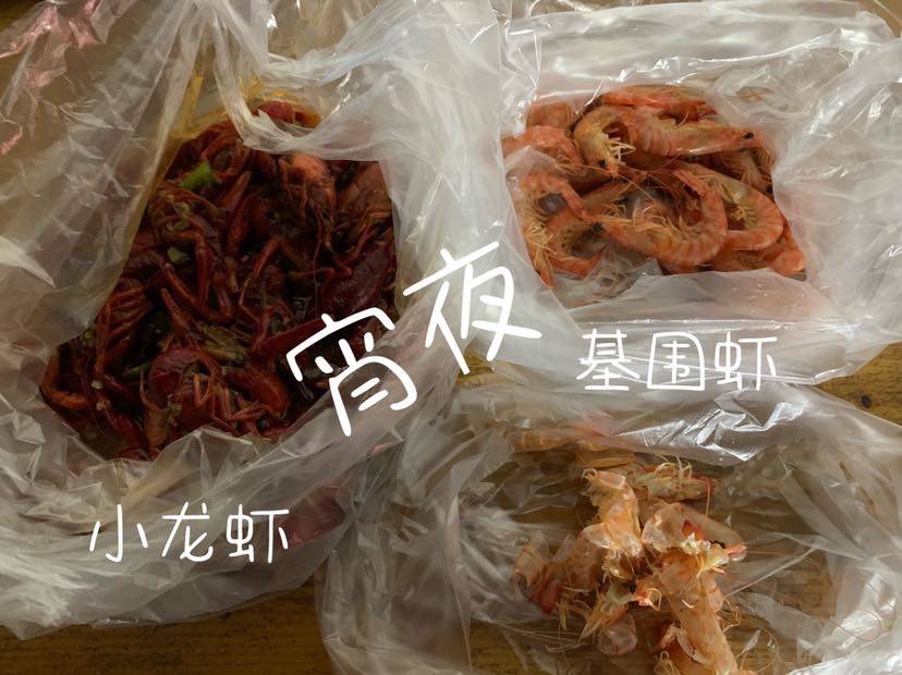 老王晚餐出去吃饭,我没去,给我带回来的小龙虾和基围虾。