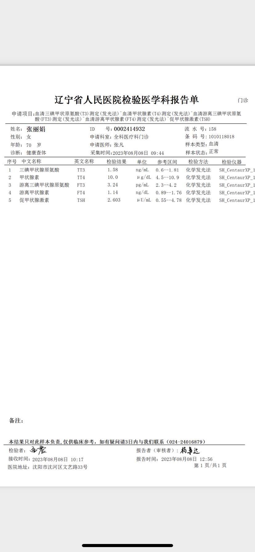 此次血项指标一切正常,甲功五项终于恢复正常值了