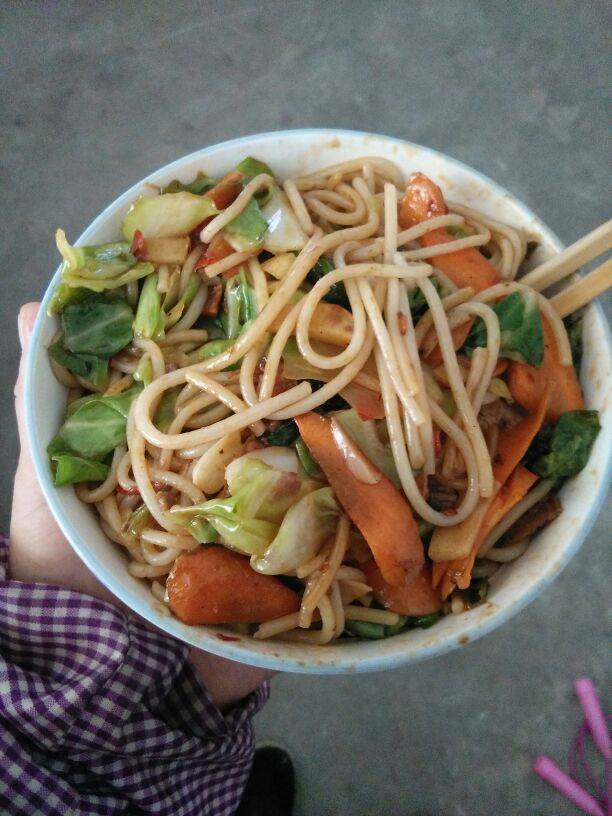 呵呵……超市卖的有成品米粉,回来煮下凉水泡下。菜切好,切了点牛肉,放西红柿炒米粉。