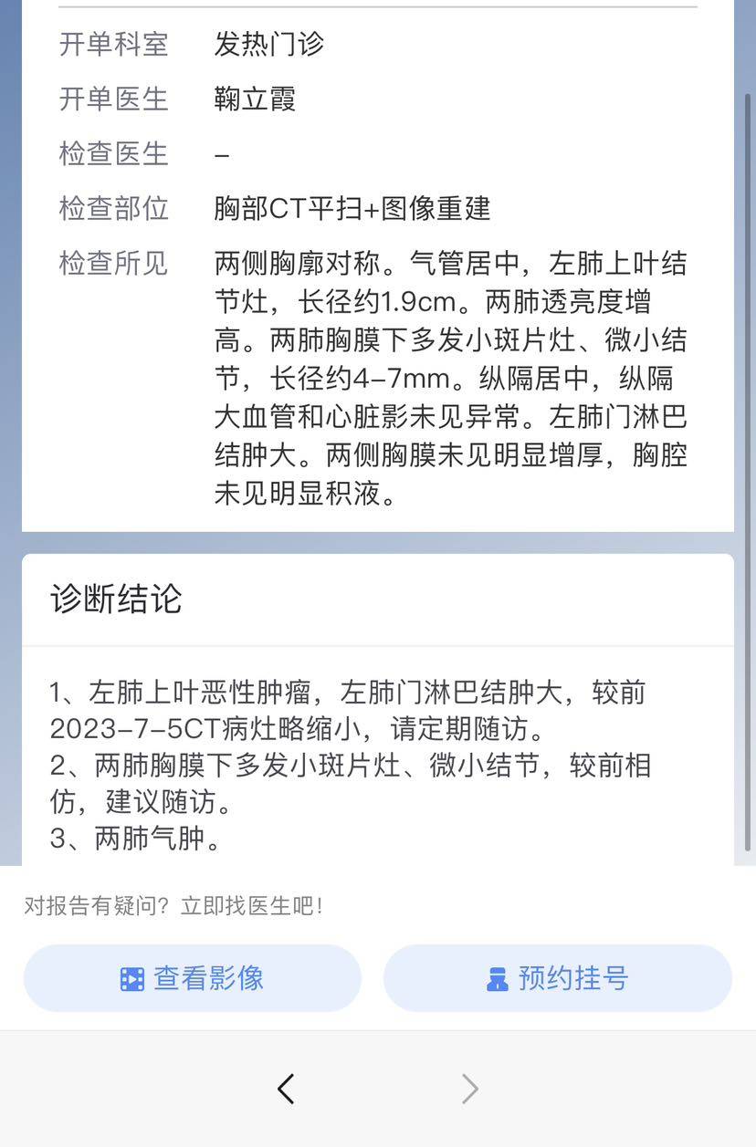 连着发高烧后,最终8/14下午退了!做的ct要三天拿报告,今天终于等来了报告!继续缩小!说明免疫药还是起了作用,这对于受苦受难的家人来说还是有点开心😃真的病人和家属太不容易了!折磨人呐!急诊医生一开始配了退烧药,作用不大!最终找了床位医生说要打地塞米松激素药连打三天里面加了护胃药,然后开瑞坦吃一周!针对皮肤瘙痒及热度!现在医院都没有配开瑞坦了,只能药房买了,医改所谓的药费便宜给的都是国产药,吃不死也没有啥效果!医生说这次发烧就是药物热,我老公属于反应比较大的那类人吧!但愿后续不要那么严重了!太痛苦了!这个病例也给其他病人一个参考吧!坚持下去就是胜利!加油👏