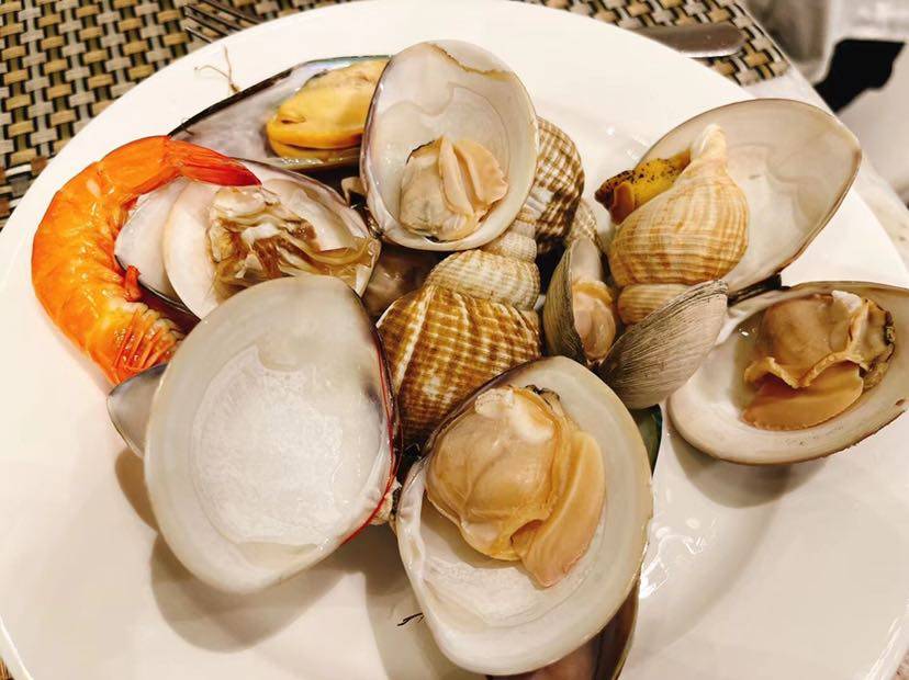 昨晚和部门同事去吃自助餐,现煎牛排好吃得不要不要的,一不小心吃了3块,一块羊排,还吃了不小海鲜,生蚝、皮皮虾等。