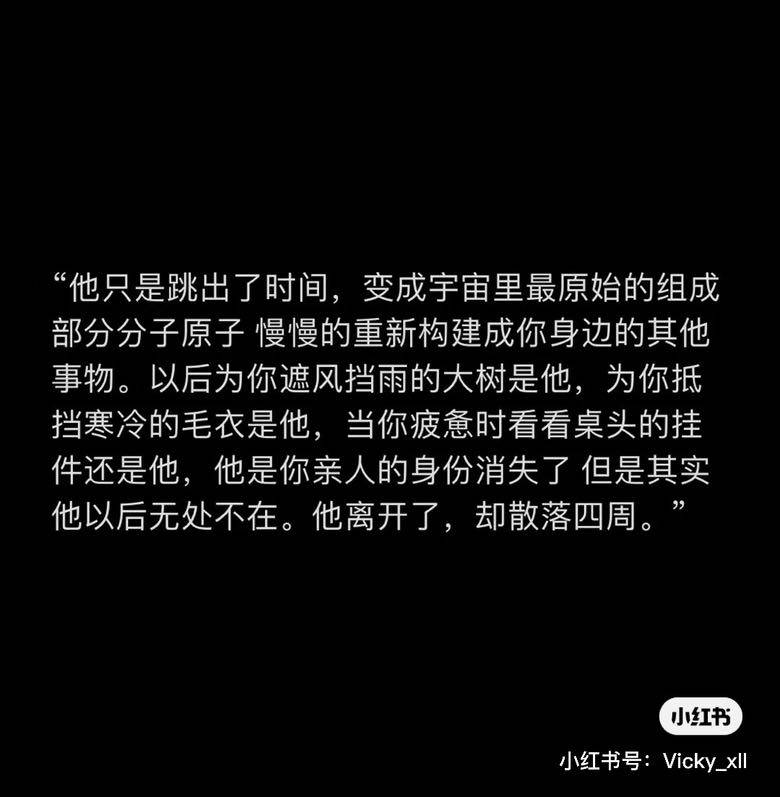 离开了就是离开了,再也不可能无处不在,无处不在的只有对亡者无尽的思念和失去亲人的痛苦。这种披着文艺的外衣,不知道从哪儿复制粘贴的不痛不痒又苍白的话,真的可以让人得到安慰吗