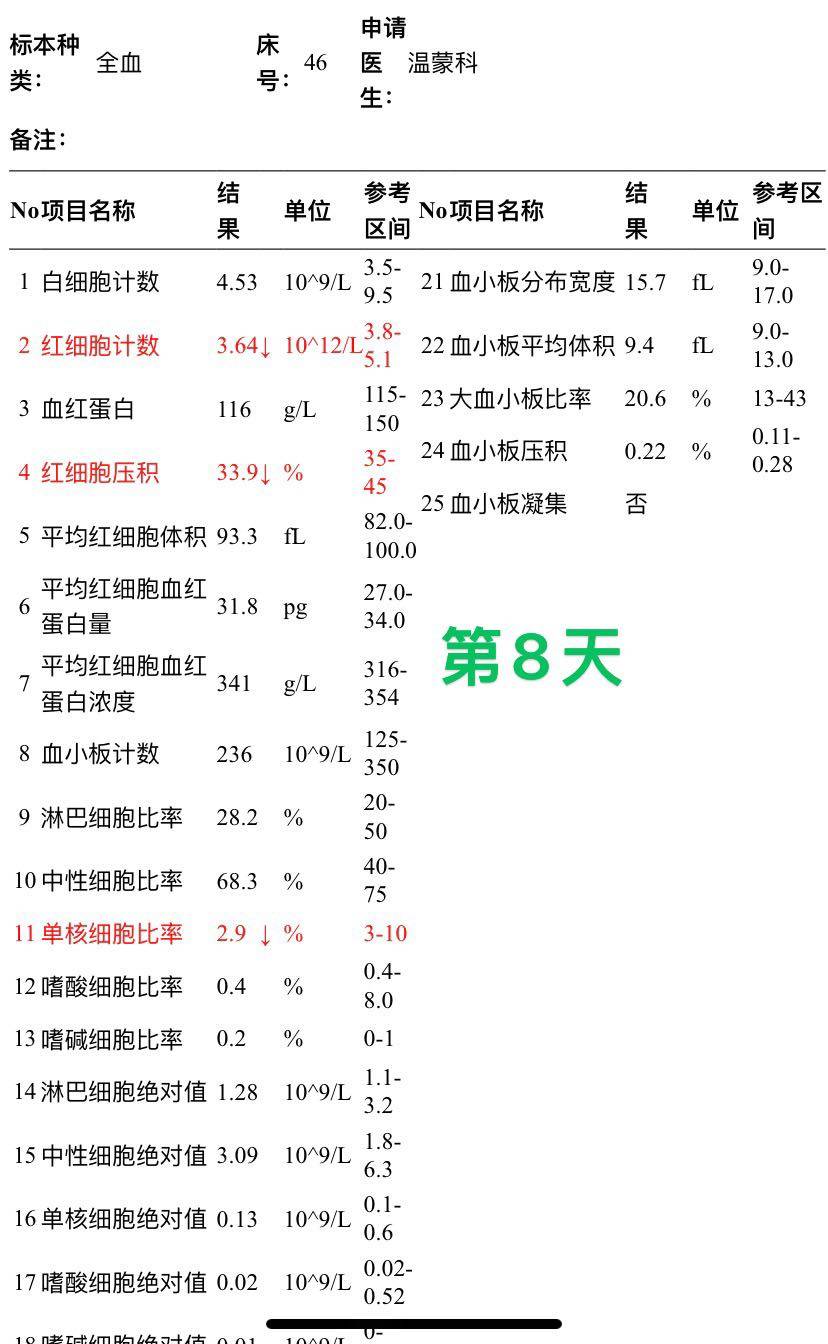 血小板也降低了不少呢,不过你血小板本来就数量大,还能扛得住