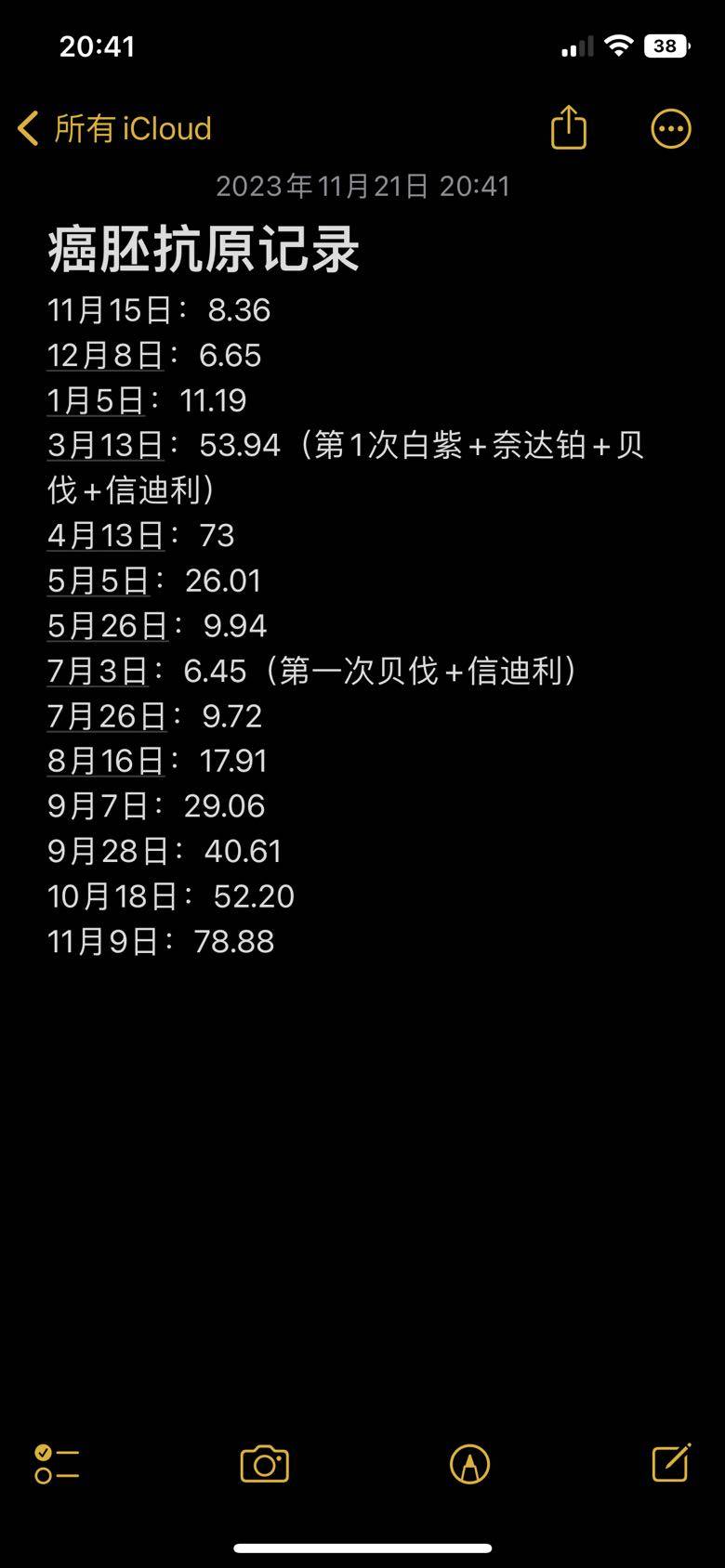 被癌胚抗原折磨闭塞了,一切的起源都是因为他,去年6月初因为体检癌胚抗原升高,经过一系列检查发现是有肺结节,后来经亲戚介绍来到省里的肿瘤医院做手术,所有检查完毕发现没有转移,就安排手术了,可手术却出问题,手术中发生恶性心律失常,手术终止。后来过了一个月再去手术,这次术前还是各种检查,还进行了petct检查,发现纵隔淋巴结肿大,直接分期到3A,医生当时也是劝我不要手术,害怕发生第一次手术的事故,当时也算是在拼命了,后来手术开胸做,留下一道长长的疤痕,幸运的是手术成功。手术后进行基因检测,想着有靶向药吃也好,谁成想没有,当时也是难过了好一阵子。后面就到内科进行4次化疗和25次放疗,想着再用阿替丽珠单抗治疗一年。可就在放疗完后一个月复查,就发现癌胚抗原升高到53,各种检查做完,没发现啥病兆,就去做了petct,发现髂骨有高摄取,本来想穿刺确认,可是细针穿不进去,最终只能核磁确认有髂骨转移。后面就是换成白紫➕奈达铂➕信迪利➕贝伐四药联合,还同时对髂骨进行放疗。化疗四次后癌胚抗原降到6,医生就建议用信迪利➕贝伐维持,因为没有打铂类了,贝伐还只能自费,一次将近一万。可自7月去掉化疗后,癌胚抗原就又持续升高,真没有停下过,可是每次检查没有发现新的病灶,就依旧维持了贝伐➕信迪利。现在打了四次贝伐➕信迪利,癌胚抗原一次比一次高,真被这个指标搞怕了,最近也发现总是很容易累,整个人也不是很精神,和3月发现转移前的状态有些一样,我就怀疑肯定是癌细胞又比较活跃了,11月复查发现升到78了,胸部ct,骨扫描,脑部核磁和腹部彩超等都暂未发现变化,真是不知道该咋搞,在想着要不要换家医院,在现在的这家医院的治疗效果总是不好,感觉一年了就没有停下过治疗。