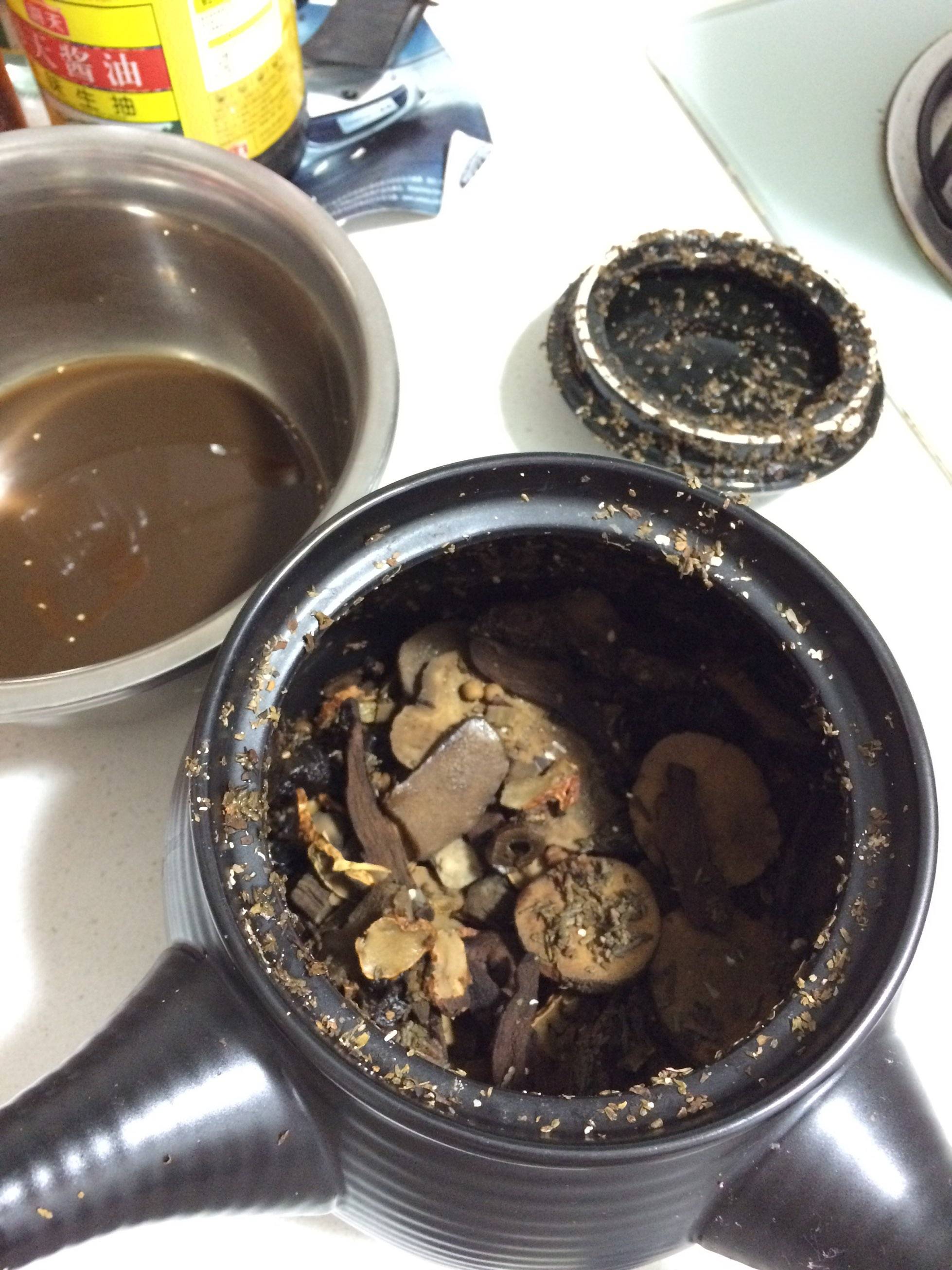 因为要外出,连续煎了两幅中药,结果5个矿泉水瓶子都装满了,可能水兑多了……