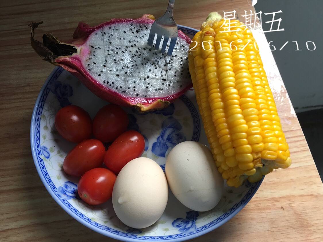新的一天开始来,我们先从早餐说起:营养玉米一根(成本1米) 鸡蛋2枚补充优质蛋白,不吃蛋黄[晕](成本1.5米,4.98/斤) 火龙果半个滋阴清热(成本0.75,xx百货特价促销3米2个)圣女果5枚(成本0.5米,5.98/斤).早餐总成本=1 1.5 0.75 0.5=3.75米,经济又实惠而且营养又吃得饱饱地,感觉自己萌萌哒
