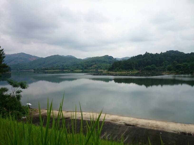 今天天气不错,外出郊游。到山顶看看远处,到水库看看别人钓鱼。风景很好