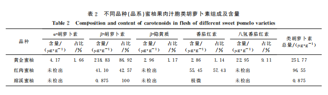 从表2中可以得知,黄金蜜柚的类胡萝卜素最高,红肉蜜柚次之,所以想护眼选择黄金蜜柚或者红肉蜜柚[1]。