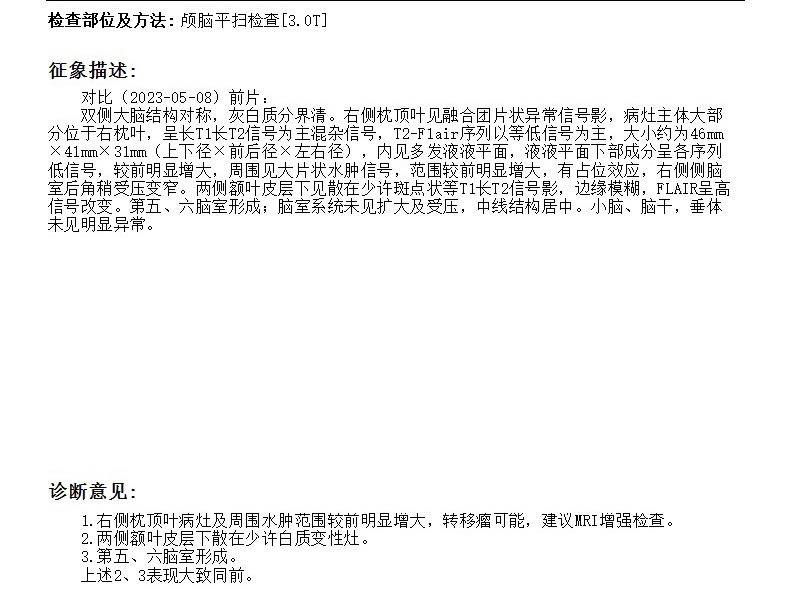 肺癌脑转移吃阿美替尼两年多之后脑补肿瘤进展