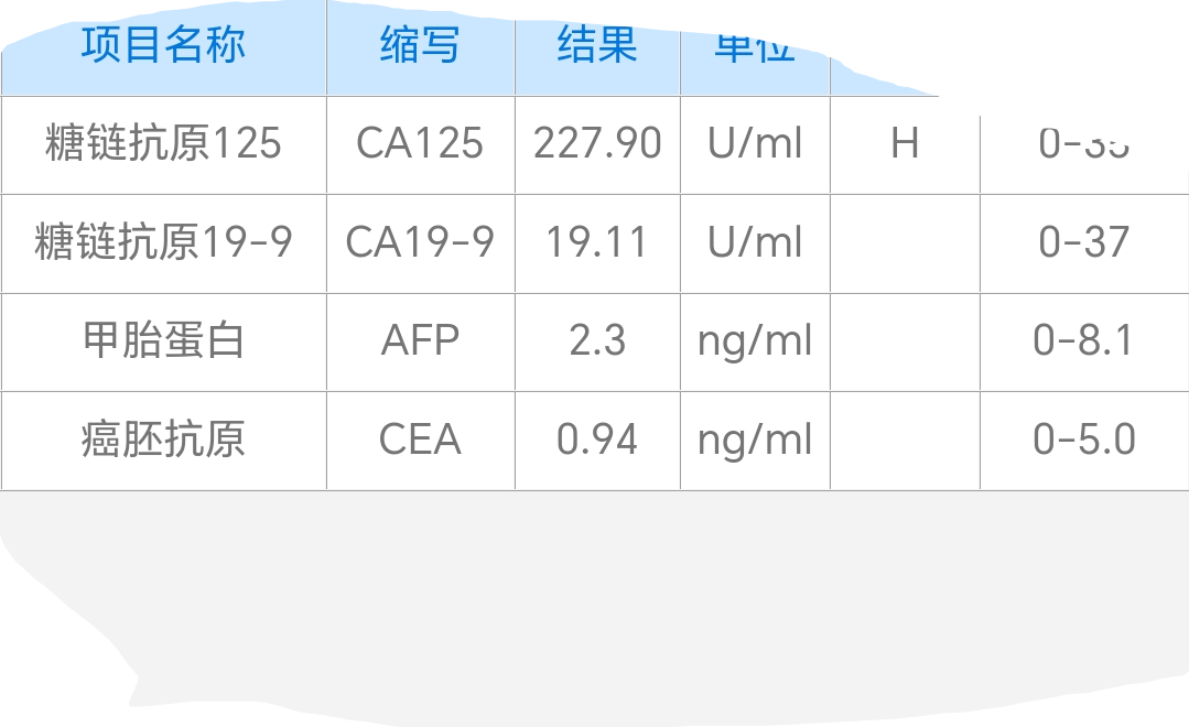 心灵美的红金鱼手术前CA近2000,现在手术后降到CA227.9,但愿化疗后能快速正常