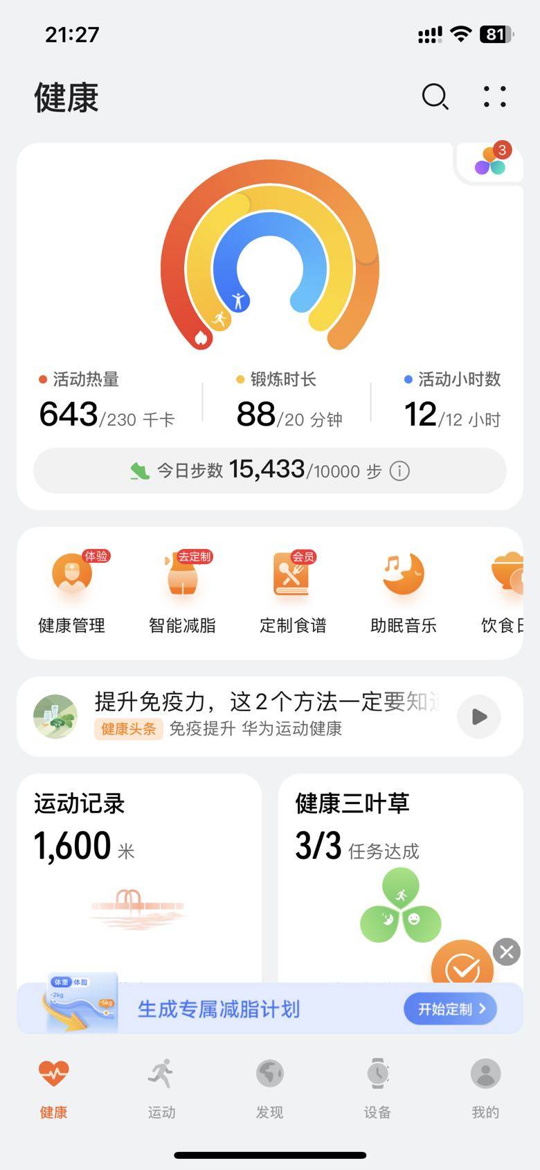 运动打卡第六天今天完美三环