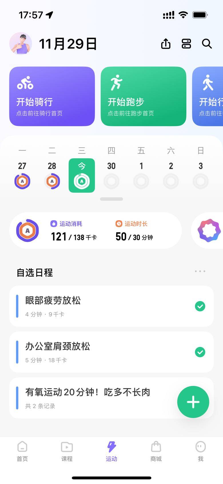 有种说法运动可以释放多巴胺,让心情愉悦起来,运动也是一种特效药呀。今日照旧有氧操加放松。