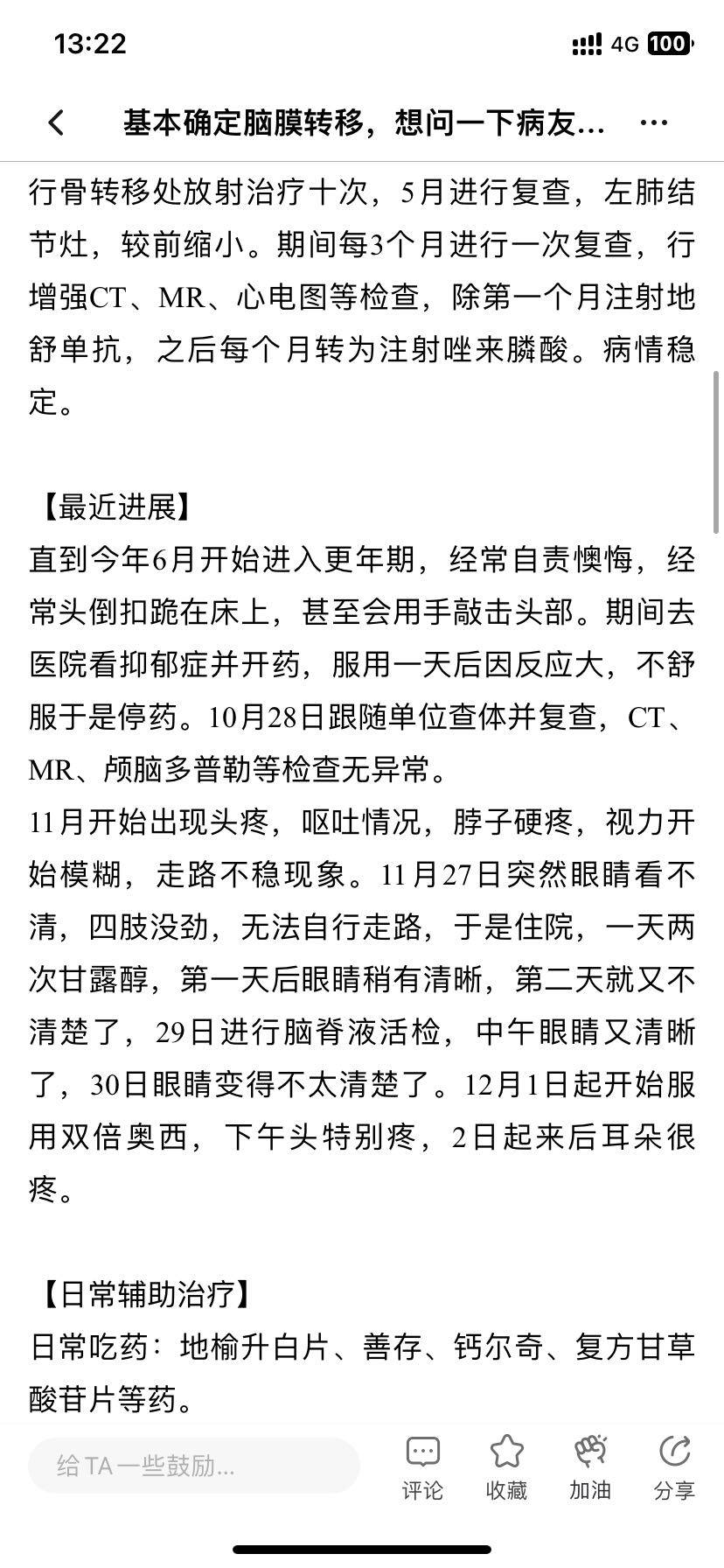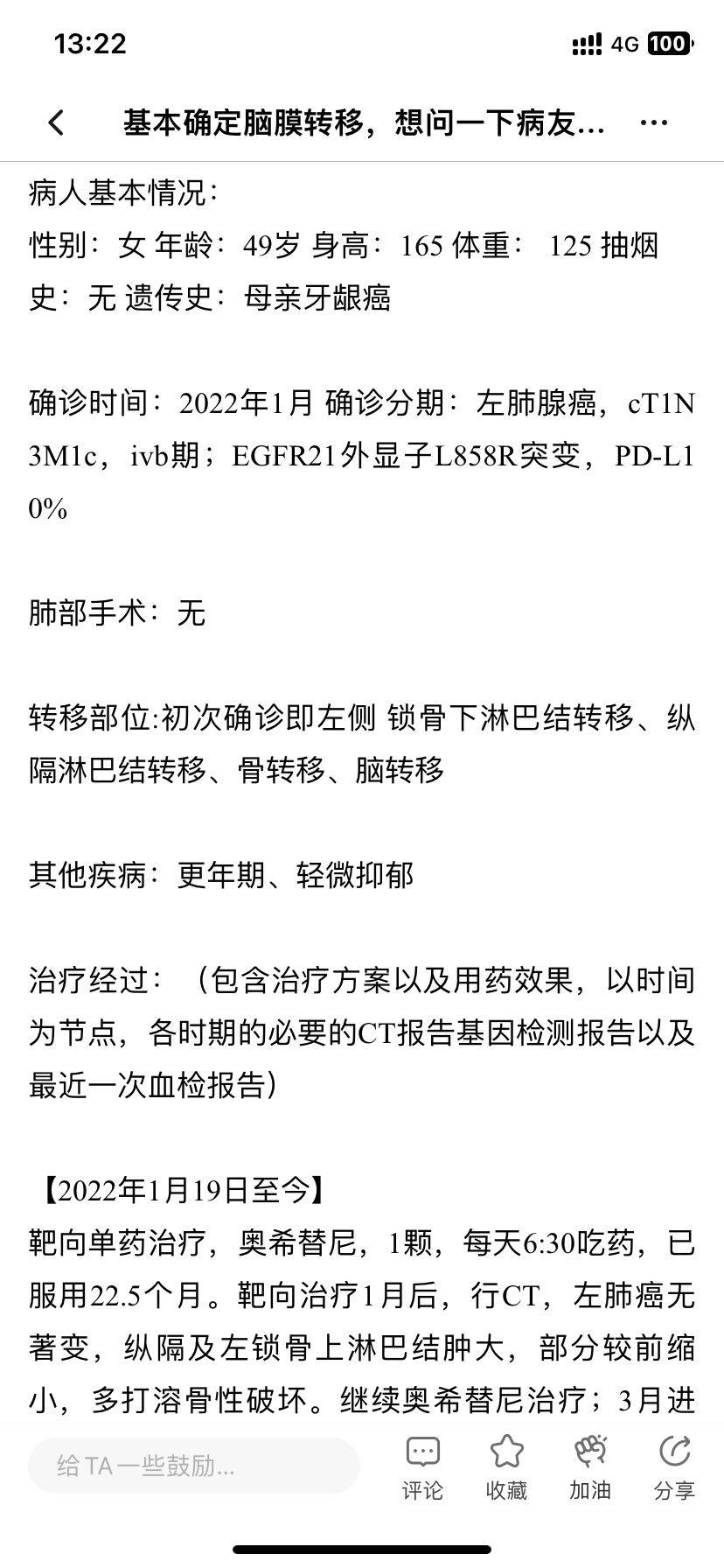 妈妈患肺癌已经有三年了,这三年来一直在接受治疗到现在,下面是妈妈检查以及治疗的过程。2010年10月,妈妈体检出肺癌IV期,纵隔淋巴转移,肝部转移,去省肿瘤医院复查,做了PET-CT,结果一样,省肿瘤