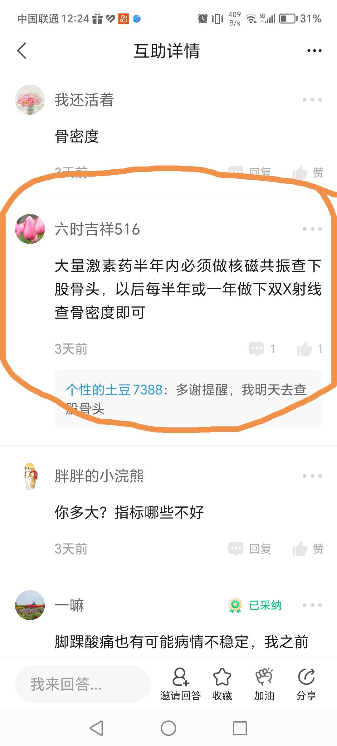 生病初期心态都会崩,我们一样过来的,坚强哦,这毛病不稳定或者减药停药都会出现小状况,来啥问题我们就解决啥,不要灰心,振作起来打败🐺才能让家人放心。控制体重减少负重,谨遵医嘱加油哦💪