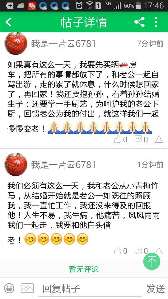 今天在(觅健)看到:如果有一天你的病好了,你最想做的事,我以前没有想过,只是一个坎一个坎的往过走,今天我真是好好想了一下,并回复了此贴,并截图,留作纪念,若干年以后实现自己的愿望!我们必须有这么一天的到来!加油everyone!