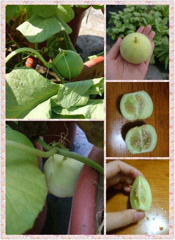 楼顶野生的香瓜熟了,晚上切开和爸妈一起分享,没想到这瓜那么小,还这么的香甜!好好吃!